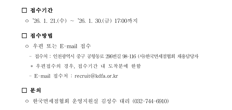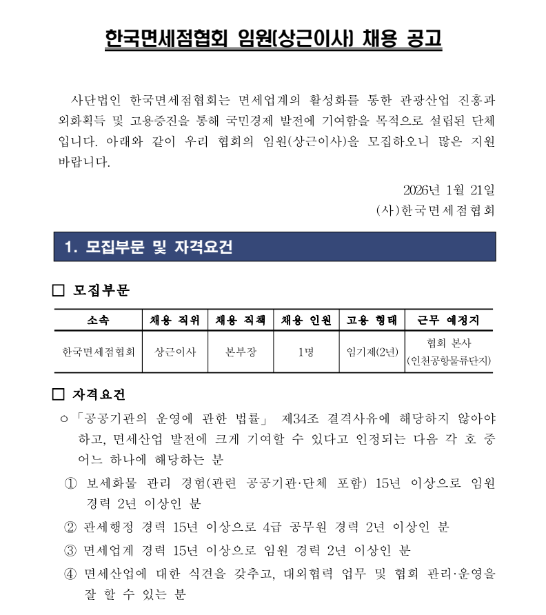 | [2026.1.21] 한국면세점협회 임원(상근이사) 채용 공고 |