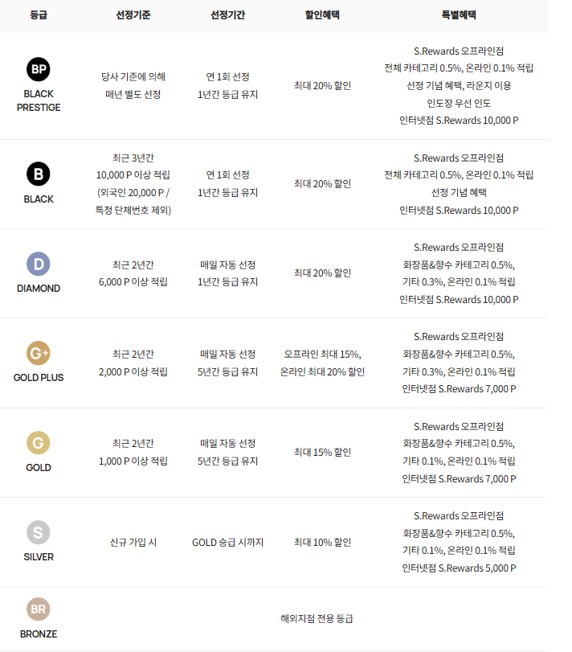 · 멤버십 회원 등급은 신라면세점 온/오프라인 상품인도금액 기준으로 선정됩니다.