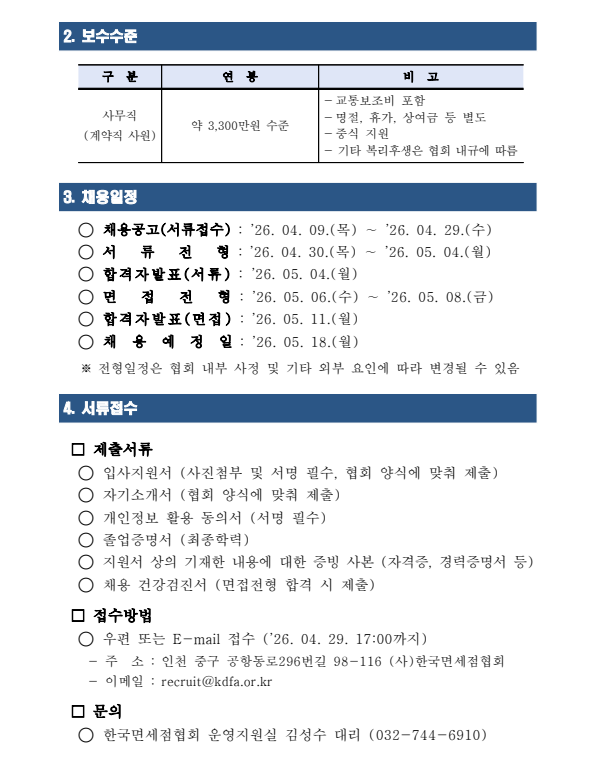 | [2026.4.9] 한국면세점협회 사무직 직원(사원) 채용 공고 |